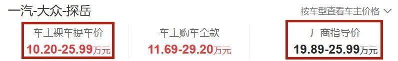 大众探岳售价19.89-25.99万元,车主提车价为10.20万元起,标配车型的价格优惠了9.69万元,优惠力度还是很大的。